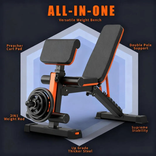 Heavy-Duty Adjustable Bench, 1000LB Capacity, Foldable